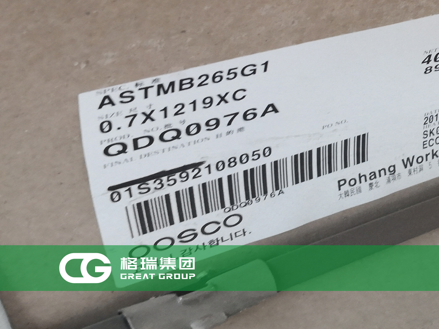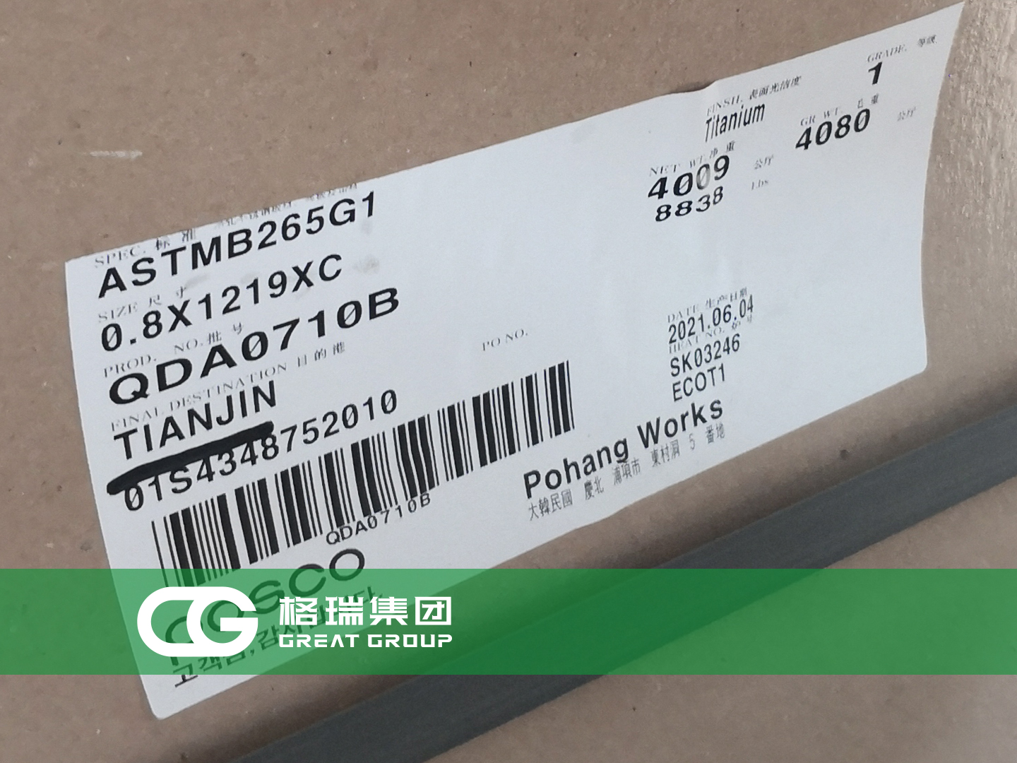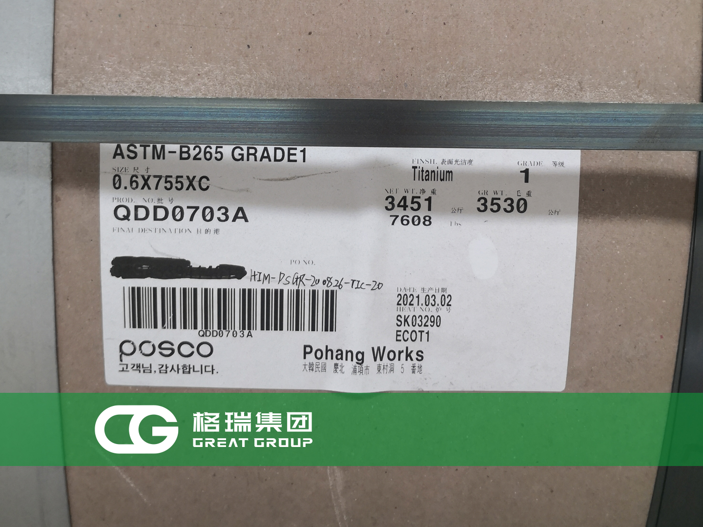 文章標題:格瑞集團:韓國浦項鈦板到貨 板式換熱器專用